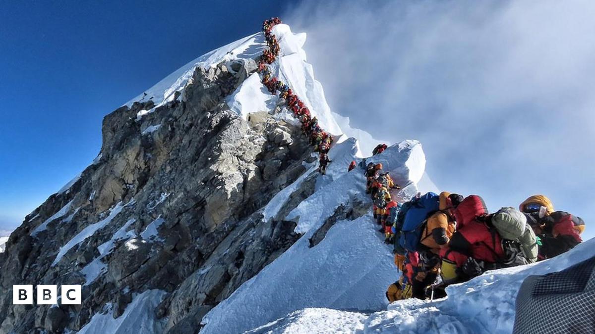 Have a look at this picture of climbers waiting their turn to reach the summit of the tallest mountain in the world, Mount Everest.