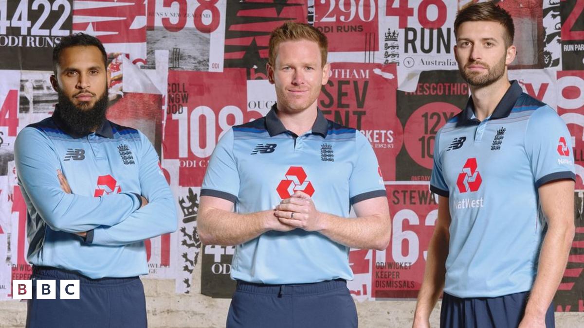 Players Adil Rashid and Eoin Morgan wearing the new kit.