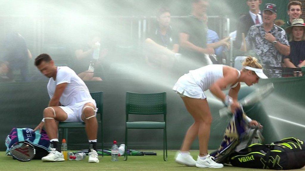 Wimbledon 2019: watch the sprinklers go off and soak the players