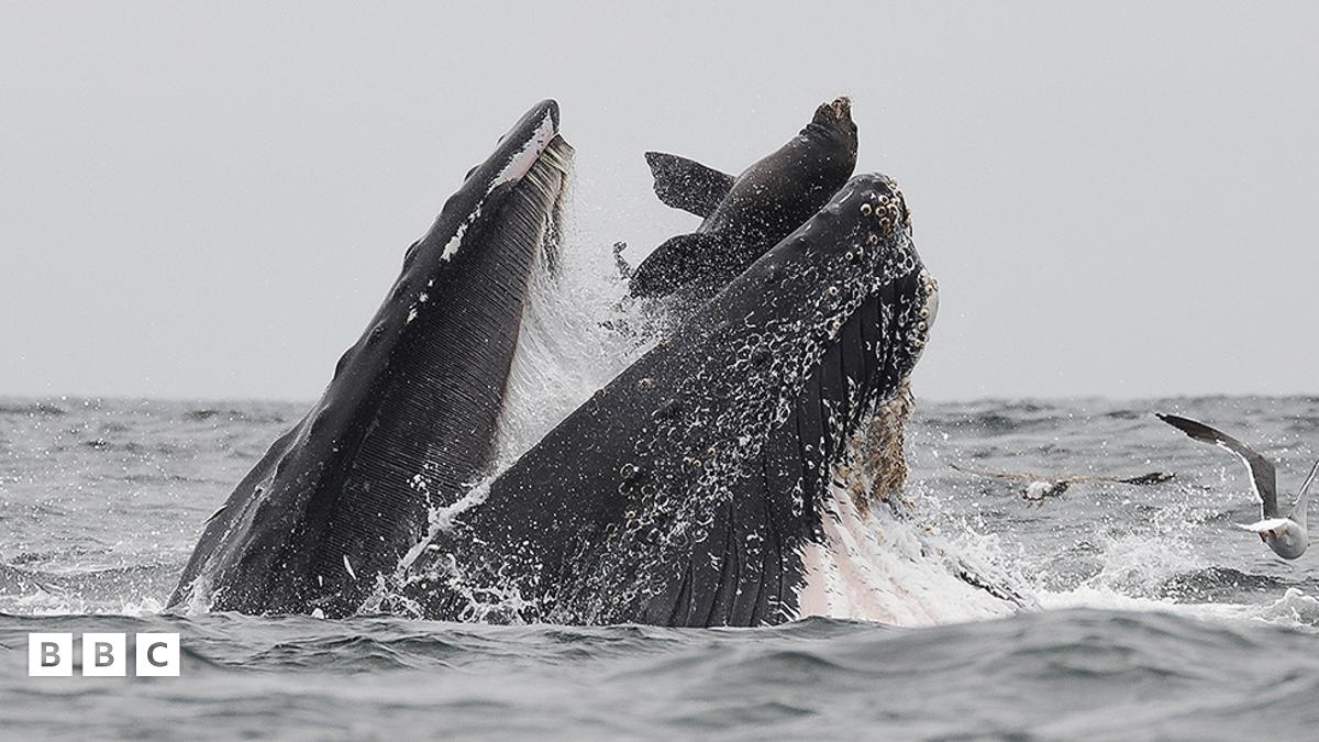 Humpback whale 'swallows' sea lion in incredible picture