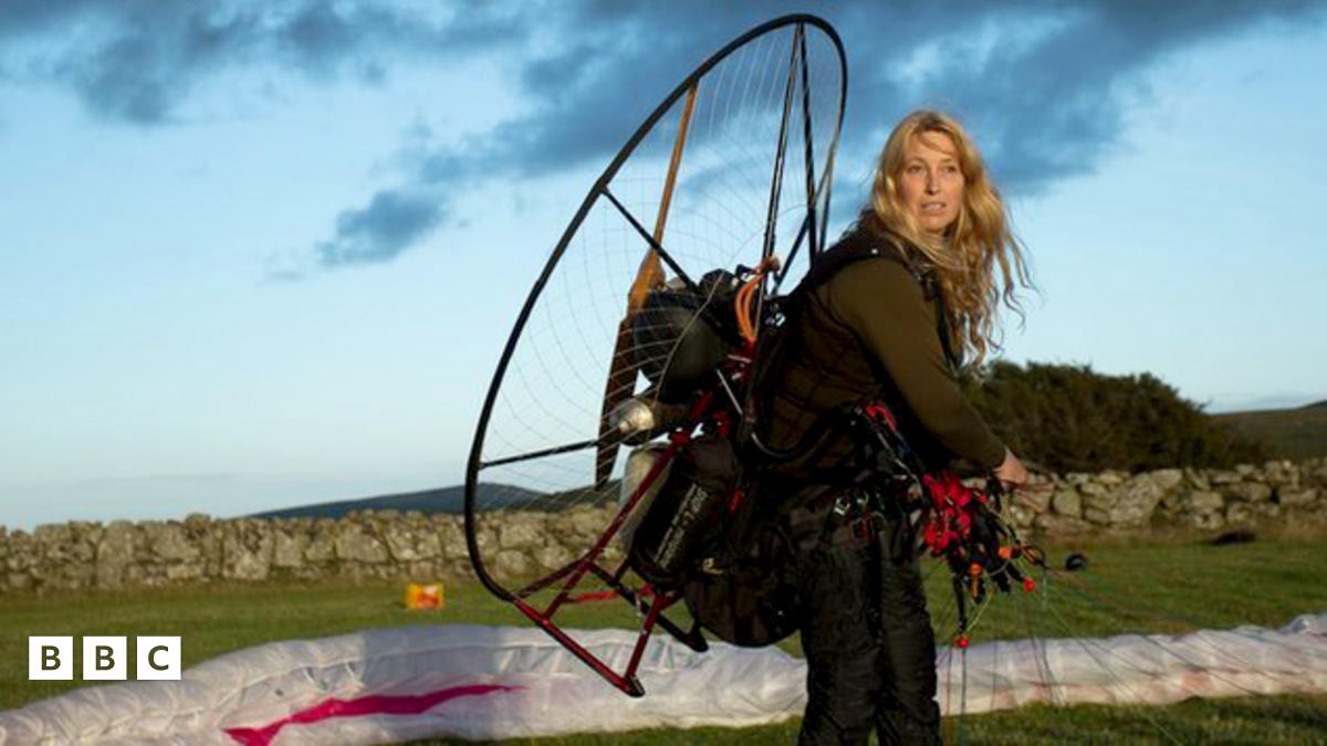 Sacha Dench travelled using a specially designed flying machine alongside Bewick swans as they migrated across Europe. The machine was made up of a parachute wing with a small propeller engine strapped to the back.
