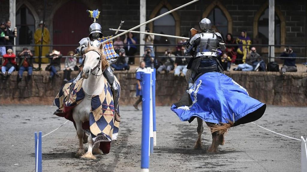 English knights battled Australian knights in the medieval sport of jousting.