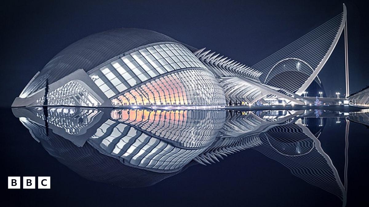 This photo of the City of Arts and Sciences in Valencia, Spain, was taken by Pedro Luis Ajuriaguerra Saiz. It's called Fish. Pedro said that due to the reflection of the water at night, the building shows us the shape of a fish, perhaps prehistoric with what looks like its heart still alive.