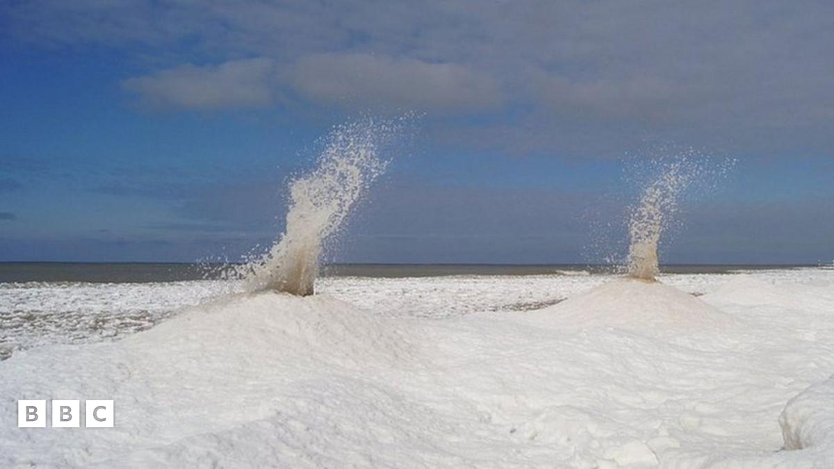 Some rather cool ice volcano 'eruptions' have been spotted at a beach in Michigan in the United States.