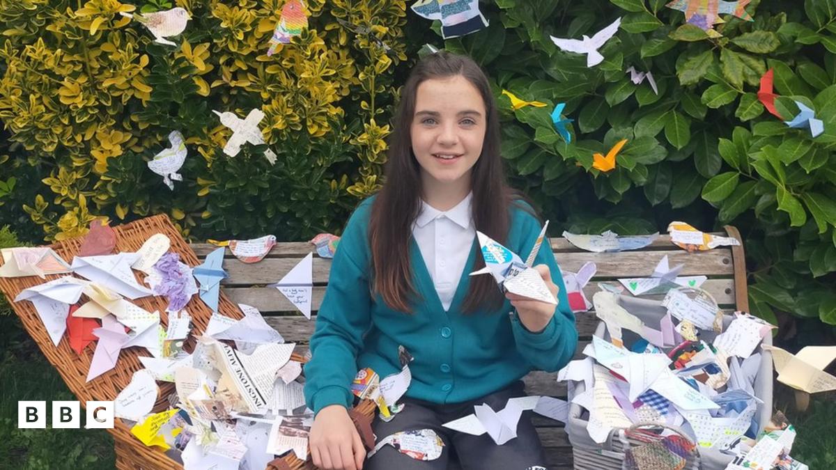 Annabelle with paper birds.Image source, ugc