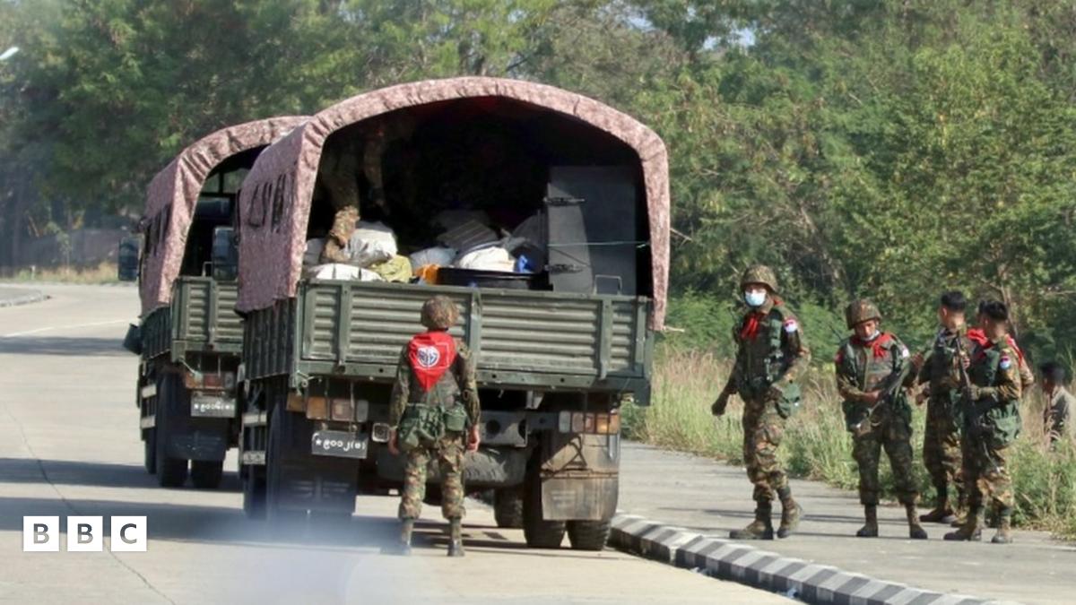 Soldiers have been seen blocking roads in Myanmar