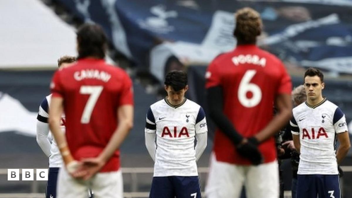 Manchester United and Tottenham Hotspur players take part in a two-minute silnmce to remember the Duke of Edinburgh