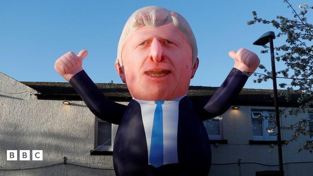 A giant inflatable of Prime Minister Boris Johnson was put up in the town as it emerged that his Conservative Party would win
