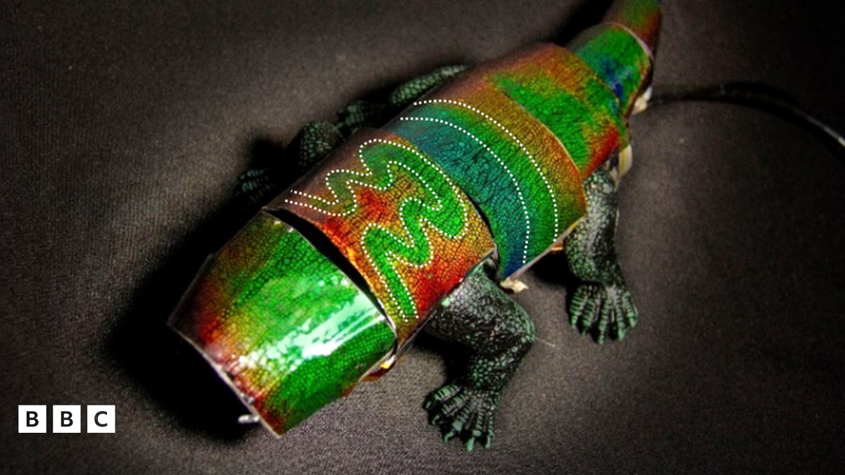 Researchers in South Korea have created a robot chameleon that can change its skin colour to match its surroundings - just like a real chameleon!