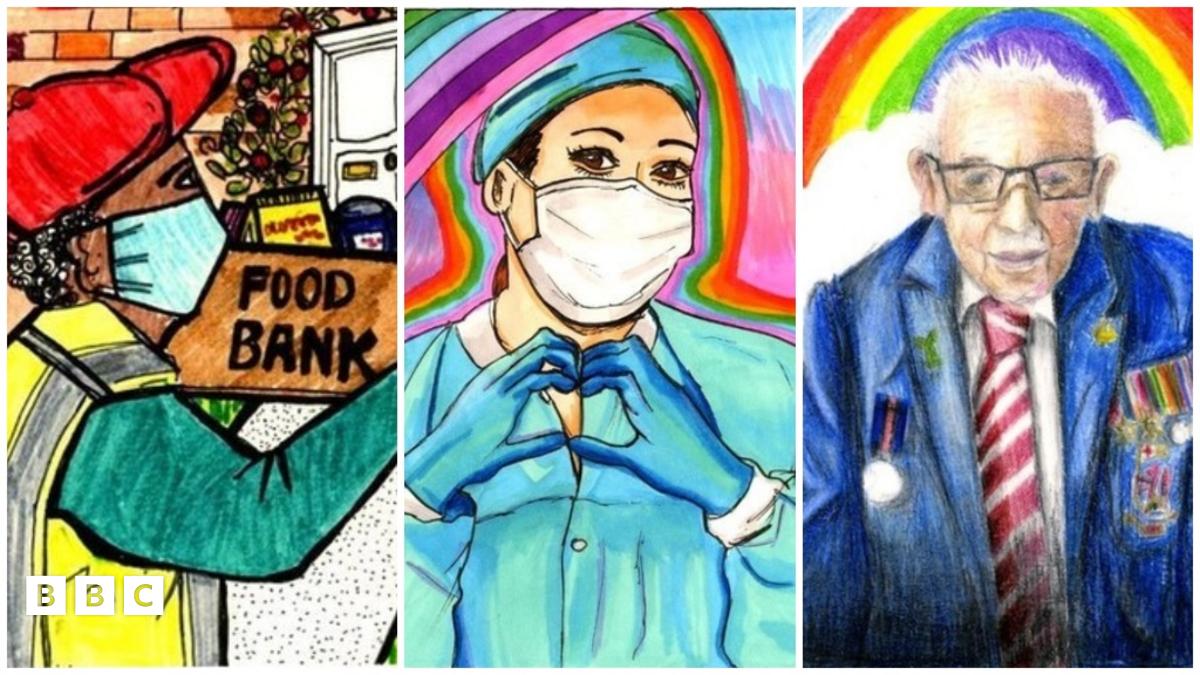 Design inspirations included farmers, postal workers, frontline medical staff and Sir Captain Tom Moore. This illustration of Sir Captain Tom came from Kristina Zelenko, aged 11.