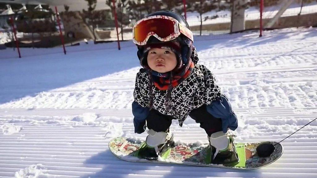 Meet the baby snowboarder aiming high!