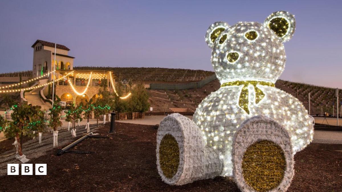 Let's travel to California, where this sparkly teddy bear is the centrepiece of the Christmas lights along Rancho California Road in the Temecula Valley.