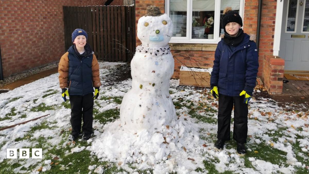 Brothers building a snowman in Dumfries and Galloway - sent to BBC News by mum Julie.