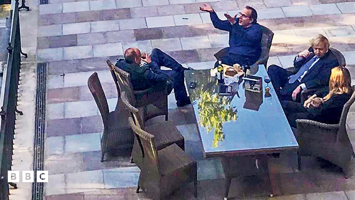 Downing Street have said the picture shows a "work meeting" and that meetings often took place outside during summer months.
