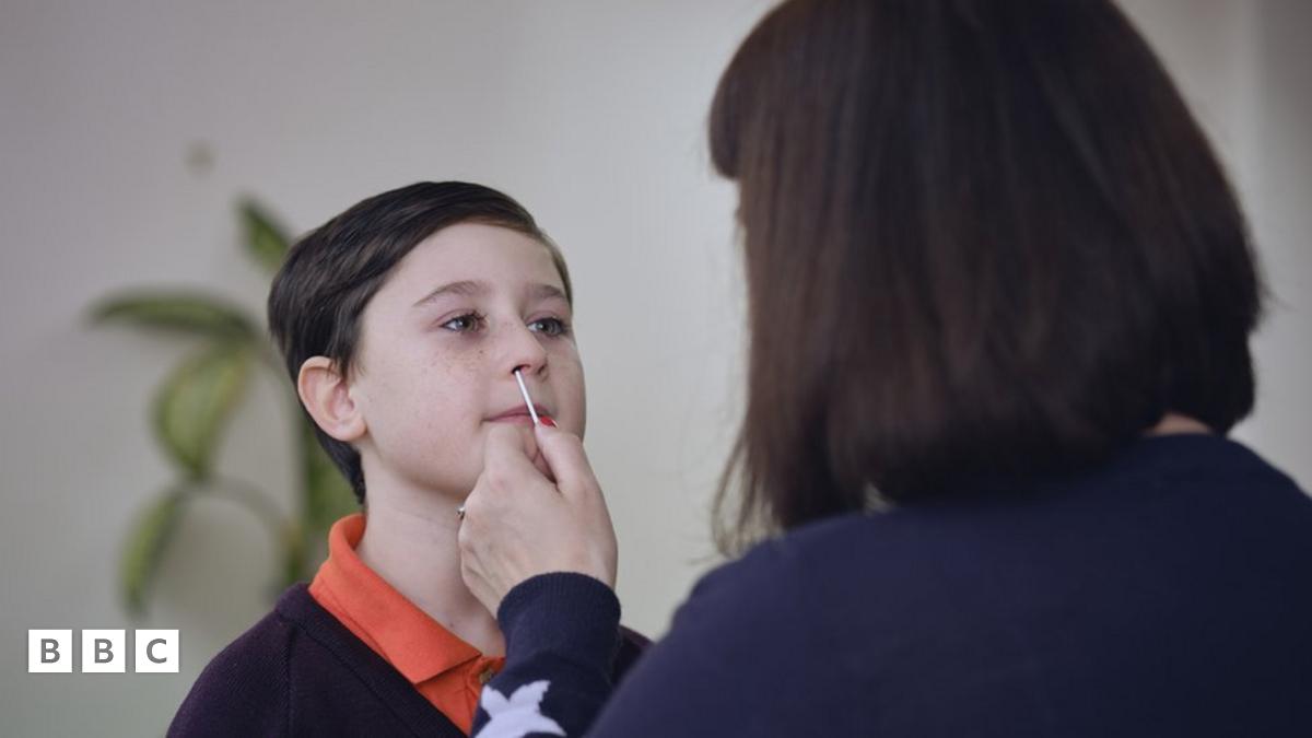 boy having his nose swabbed for a lateral flow testImage source, Getty Images