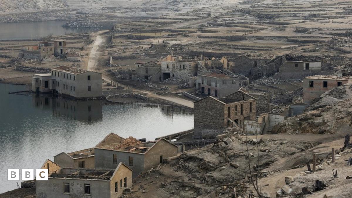 'Ghost village' emerges from dried-up reservoir