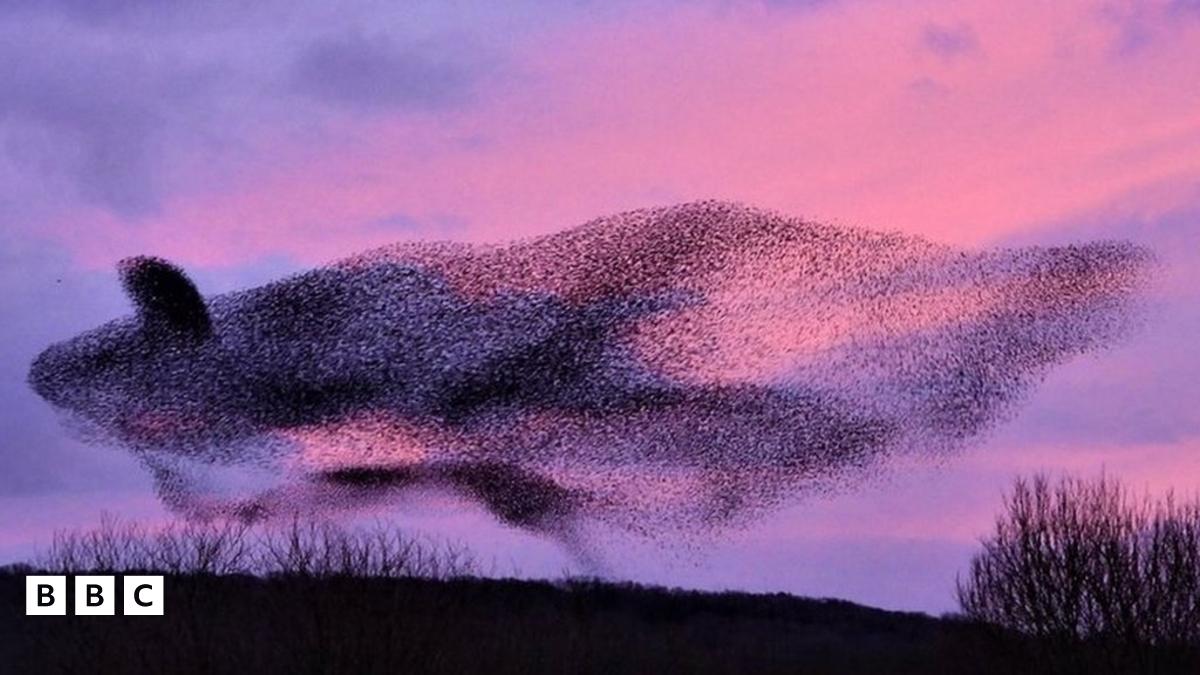 Starlings in shape of whale captured on camera in Lancashire
