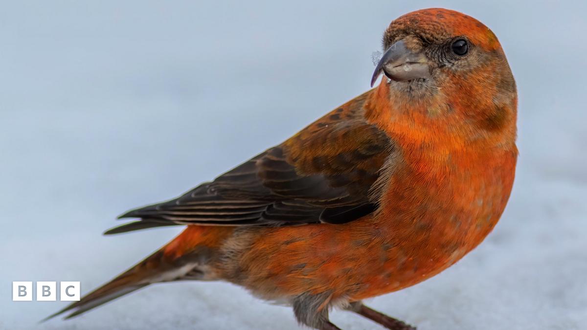 Crossbills are a type of finch and have a beak - or bill - which is crossed over at the tip, giving them their name. This crossed bill is used to extract seeds from conifer cones.