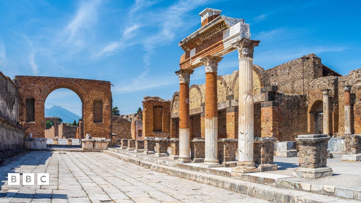 In 79 A.D Mount Vesuvius, a nearby volcano erupted, covering the then busy city of Pompeii with ash.