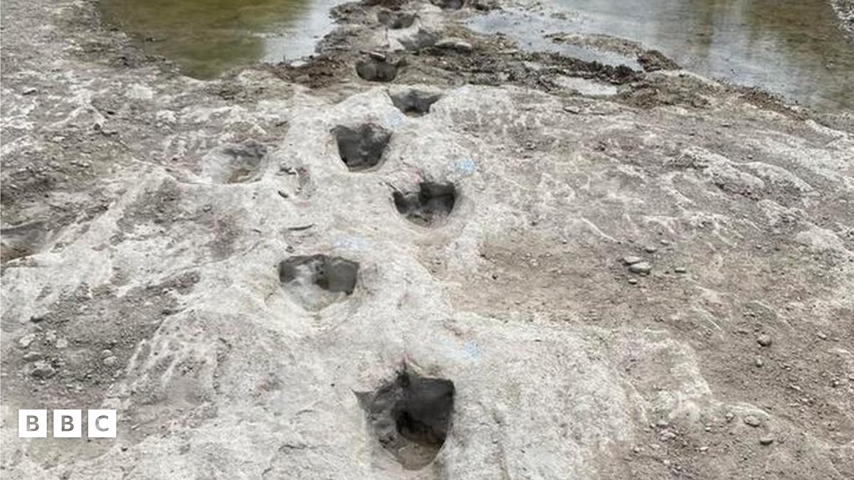 Drought conditions in Texas, in the US, have revealed dinosaur tracks on a riverbed.