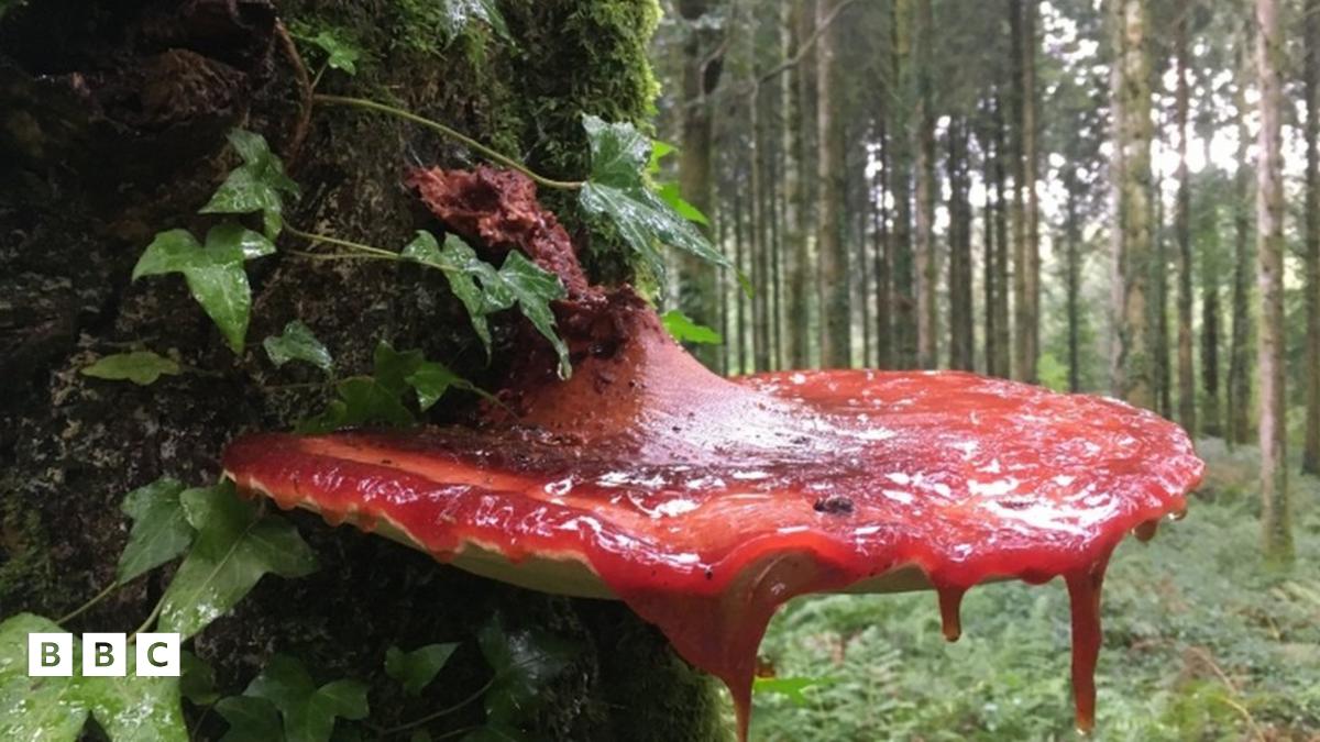 Have you ever spotted this when out in the woods? The beefsteak fungus is a woodland fungus that looks like a raw piece of meat. It even oozes out a blood-like substance when it's cut....wow.