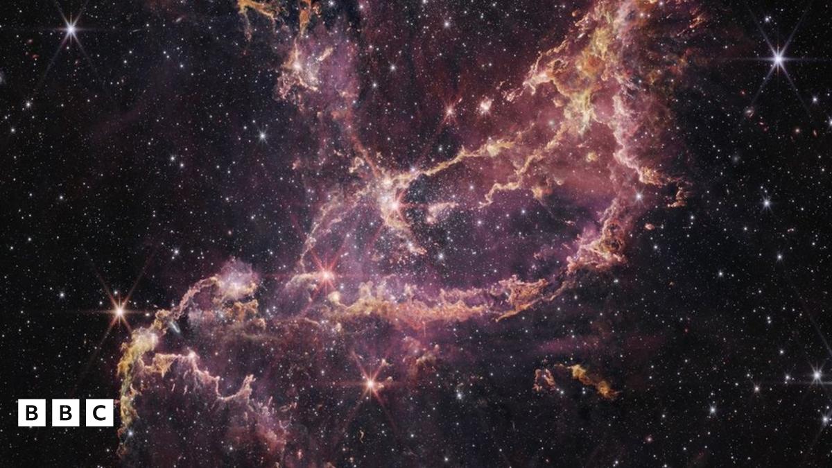 The image shows a young cluster of stars called NGC 346, which are more than 200,000 light-years from Earth.