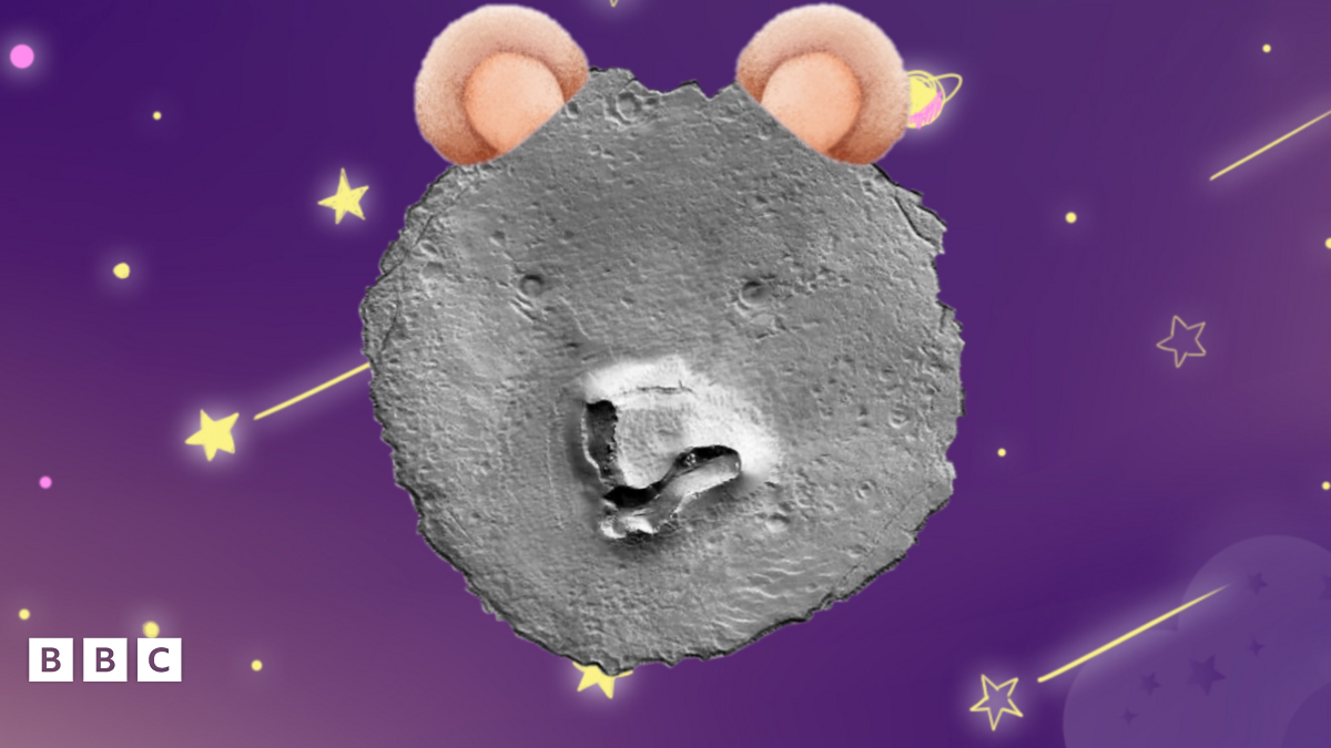 Two craters, likely to be from asteroids that have impacted the surface, have made the bear's eyes. While a sloping - possibly volcanic - collapsed hill is its snout.