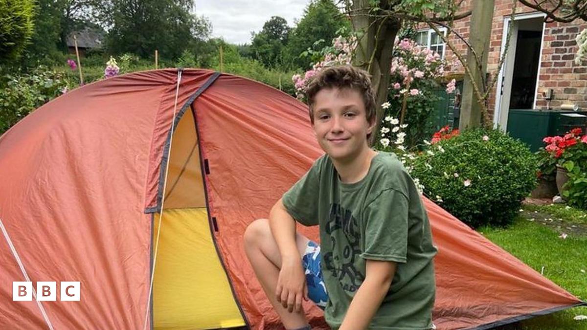 A boy who has camped outside in a tent in his garden for three years has ended his charity challenge - sleeping in his bedroom for the first time since 2020.