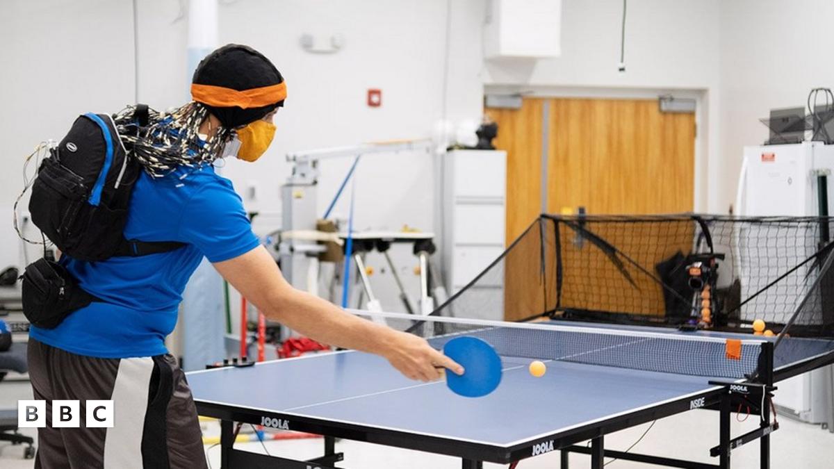 More than 100 electrodes capture fine detail of the brain activity of participants while they play a fast-paced game of table tennis.Image source, University of Florida/Frazier Springfield