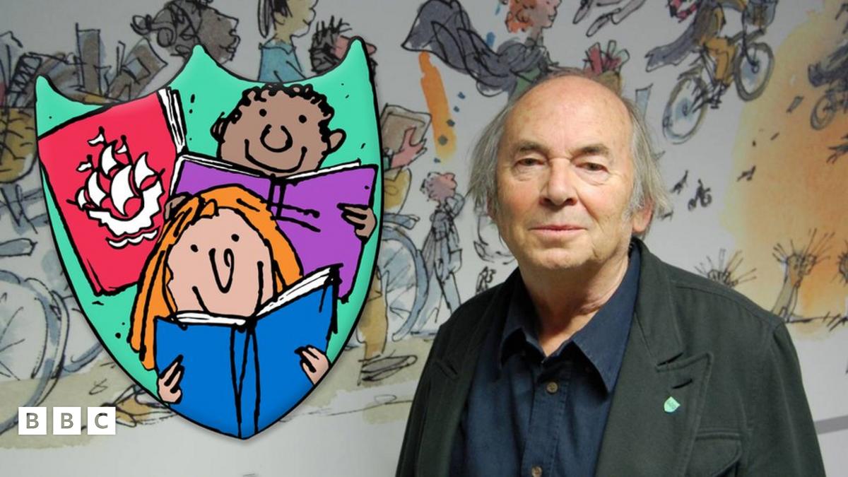 The badge is to celebrate reading and was designed by one of the UK's best-known illustrators, Sir Quentin Blake.