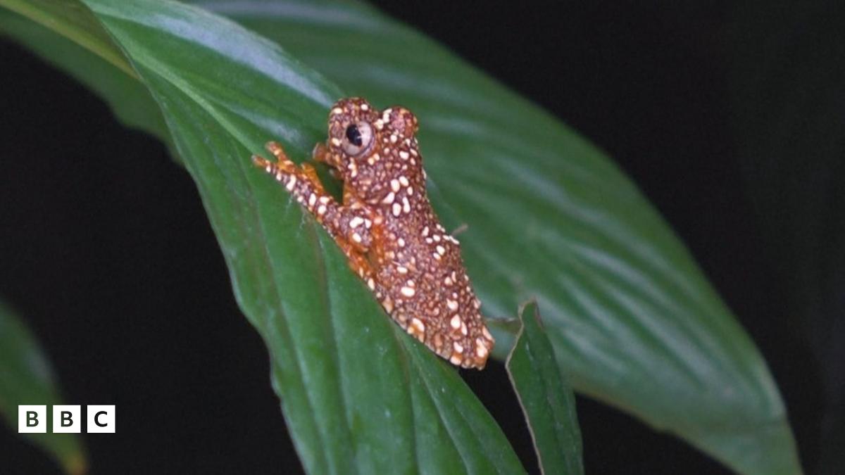 The young offspring of Wallace's flying frogs, which are reddish brown with small white dots, have an "unusual colour pattern".