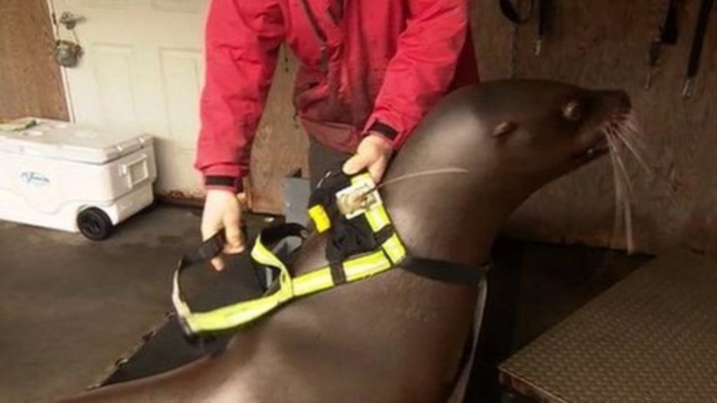Hazy and three other sea lions have been given the special backpacks to wear.