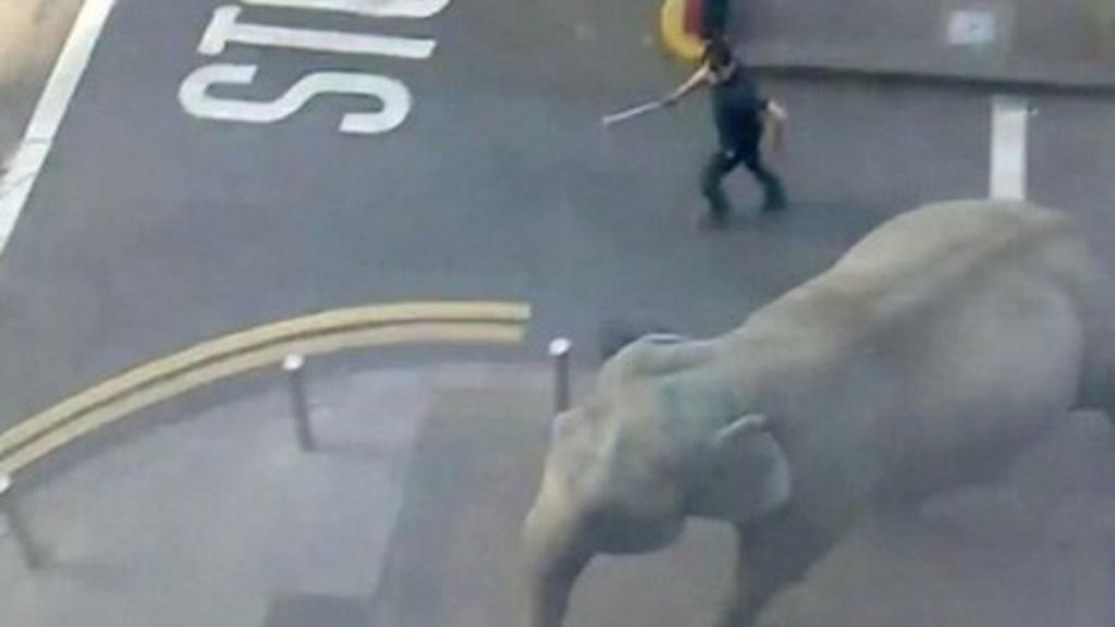 Elephant escapes from circusTo play this video you need to enable JavaScript in your browser.This video can not be playedElephant escapes from circusCloseBaby the elephant on the runPublished29 March 2012Read description