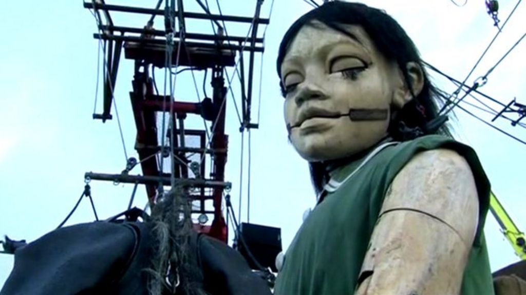 Three massive puppets have been roaming the streets of Liverpool.