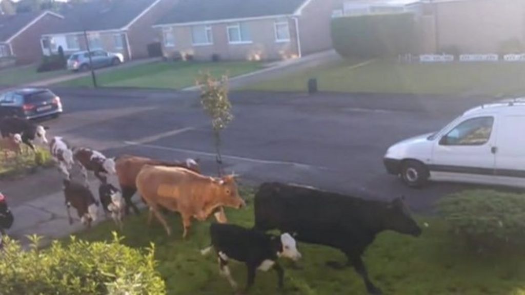 James Lee filmed the cows from his house in Harrogate early on Sunday morning.