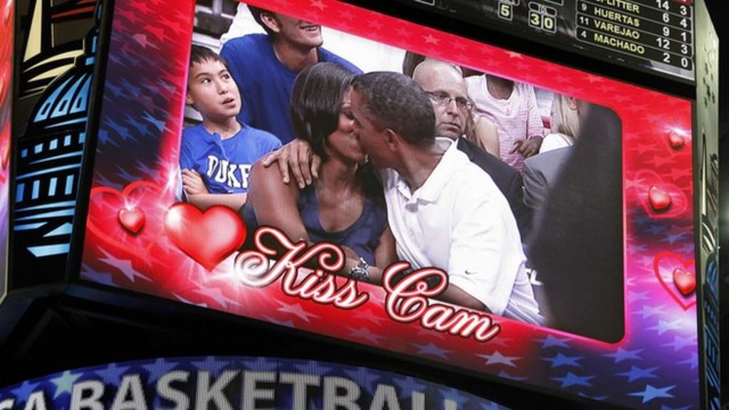 Obamas kiss at basketball game