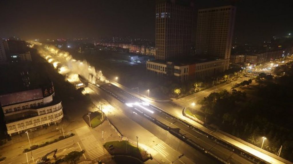 A bridge has been blown up in China to make way for a new longer highway.