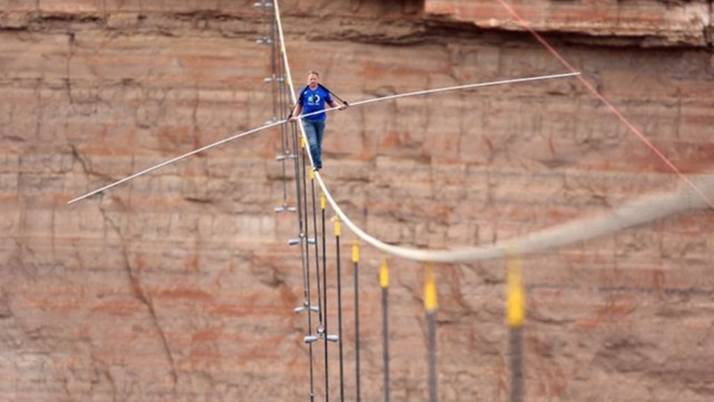 Daredevil completes Grand Canyon high-wire recordTo play this video you need to enable JavaScript in your browser.This video can not be playedDaredevil completes Grand Canyon high-wire recordCloseNik Wallenda has become the first person in history to walk on a high-wire over a section of the Grand Canyon in the USA. Published24 June 2013Read description