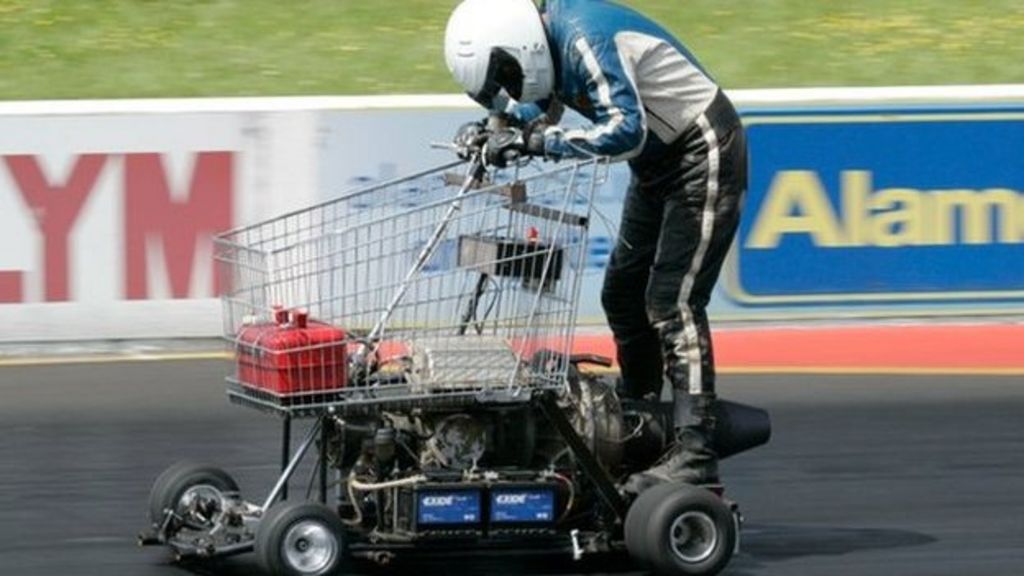 Super fast shopping trolley reaches record speedsTo play this video you need to enable JavaScript in your browser.This video can not be playedSuper fast shopping trolley reaches record speedsCloseImagine a shopping trolley that can move as fast as a car - well here it is!Published10 July 2013Read description