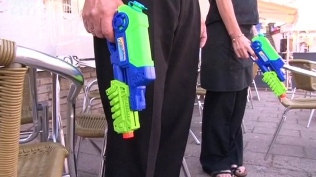 Cafe scares seagulls with water pistols