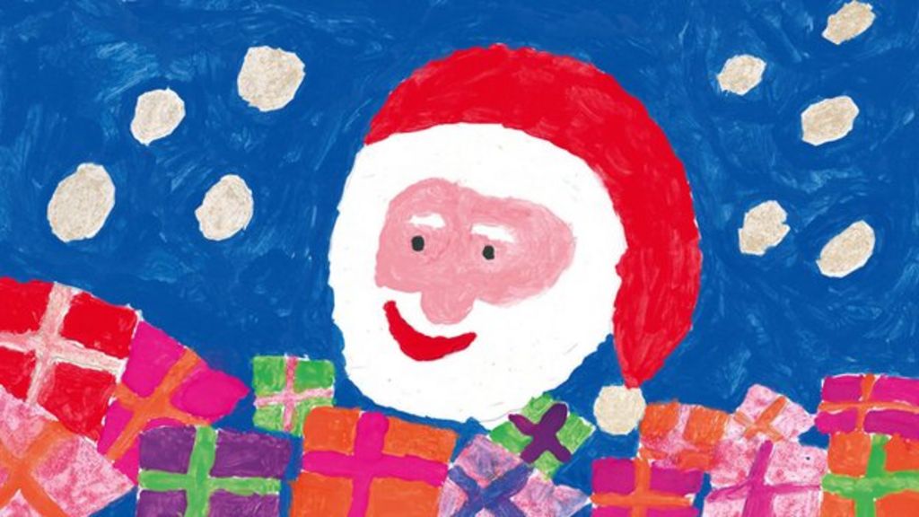 The winners are Molly, aged 7, whose picture shows Father Christmas surrounded by presents and 10-year-old Rosie who drew angels singing.