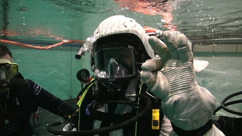 Major Peake is training at the European Astronaut Centre in Germany, where he's using a pool to try and experience what it's like to work in zero gravity.