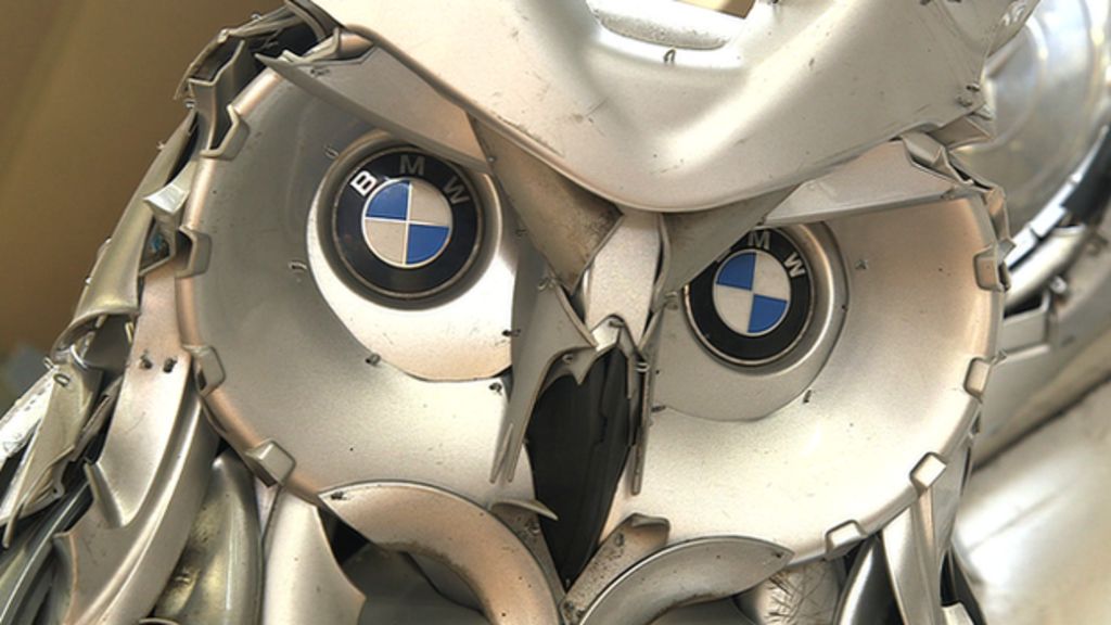 He got into making scrap art after finding lots of hubcaps and rubbish near his home.