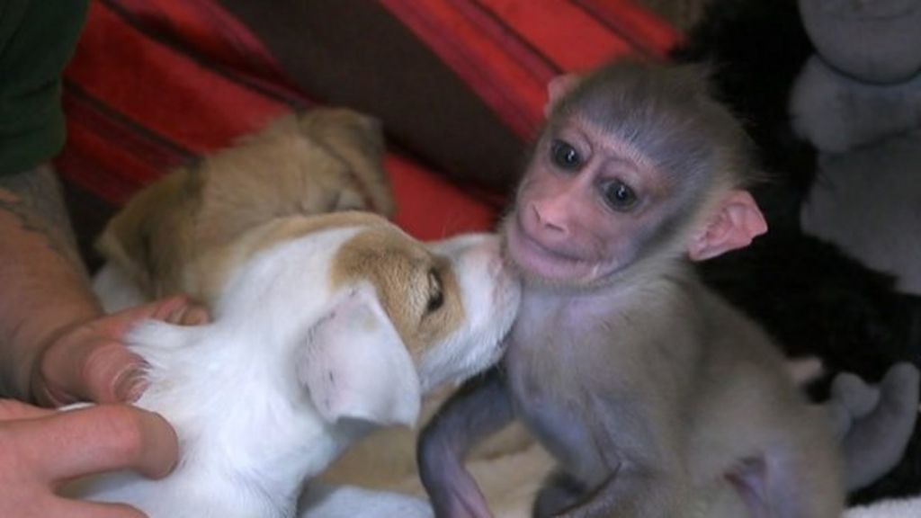 Now, pups Daisy and Ian are keeping 2 month-old monkey company whilst she is being looked after.