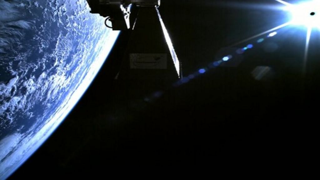 It shows the moments just after it was released by its launch rocket high above the Pacific Ocean.
