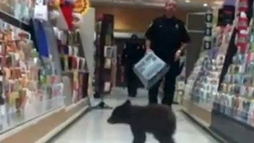It took staff and police several attempts to try and scoop the bear up into a shopping basket to get him out of the store.