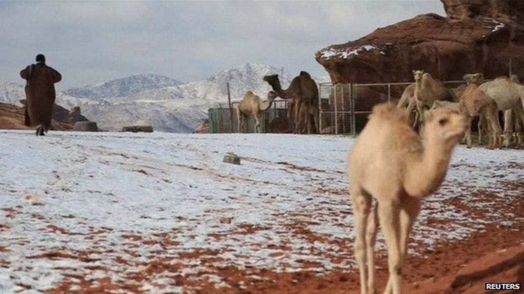 The bulk of the snow hit a town near the northern city of Tabuk.