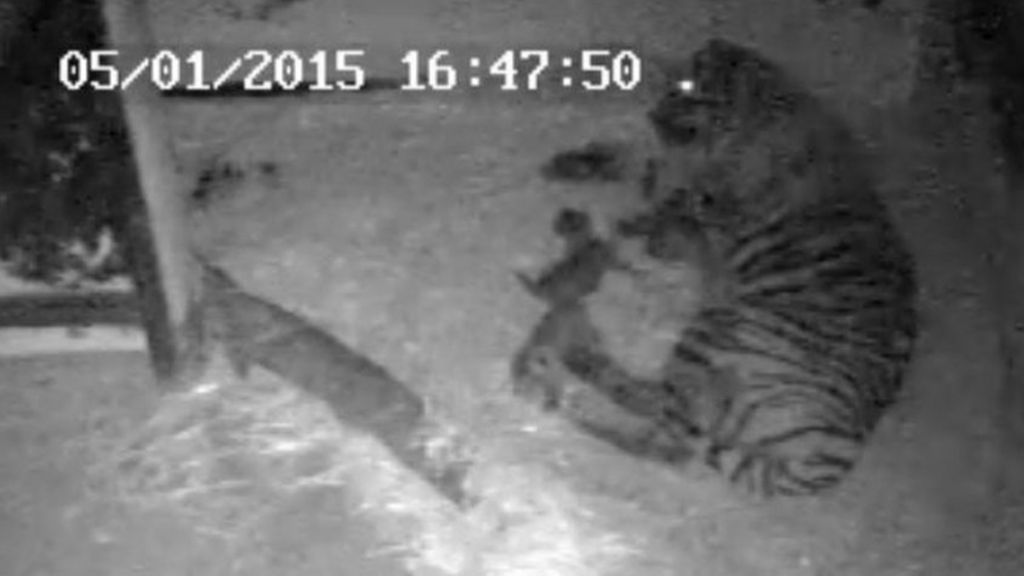 The triplets were born earlier this month, and keepers recorded this great footage of them playing with their mum, Kirana.