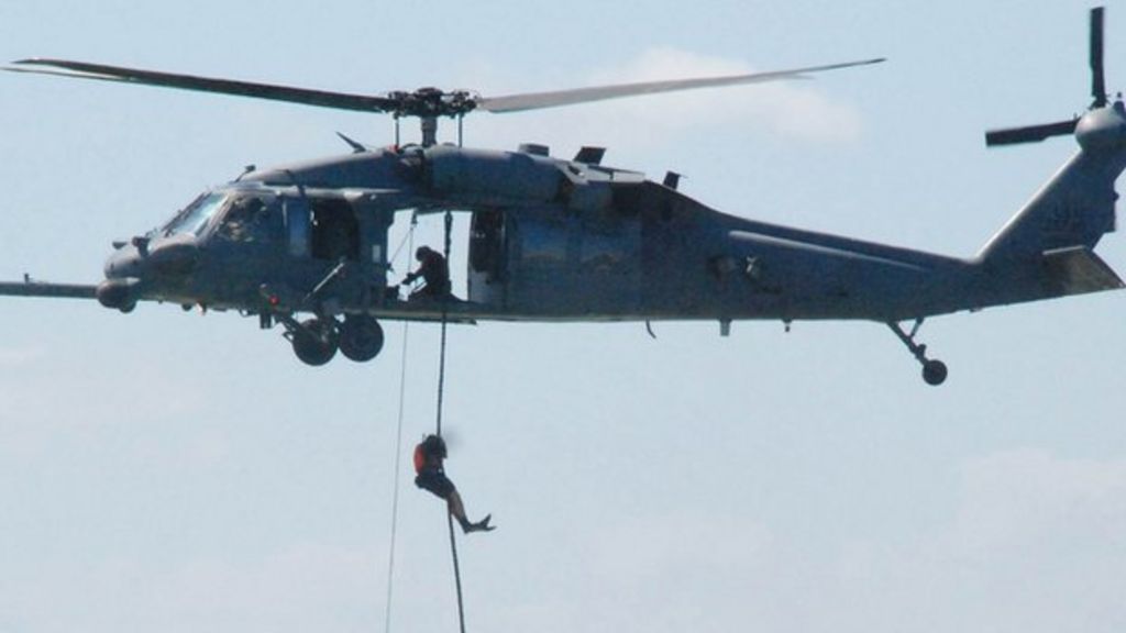 Fire crews then lowered themselves from the helicopter to pull the pup, named Bart, out of the water.