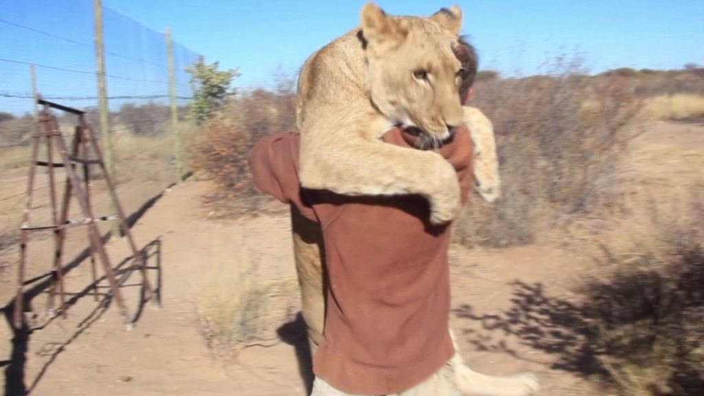 A lion hugging a human is definitely not something you see every day but for Valentin Gruener and Sirga the lion, it's their normal way to greet each other.